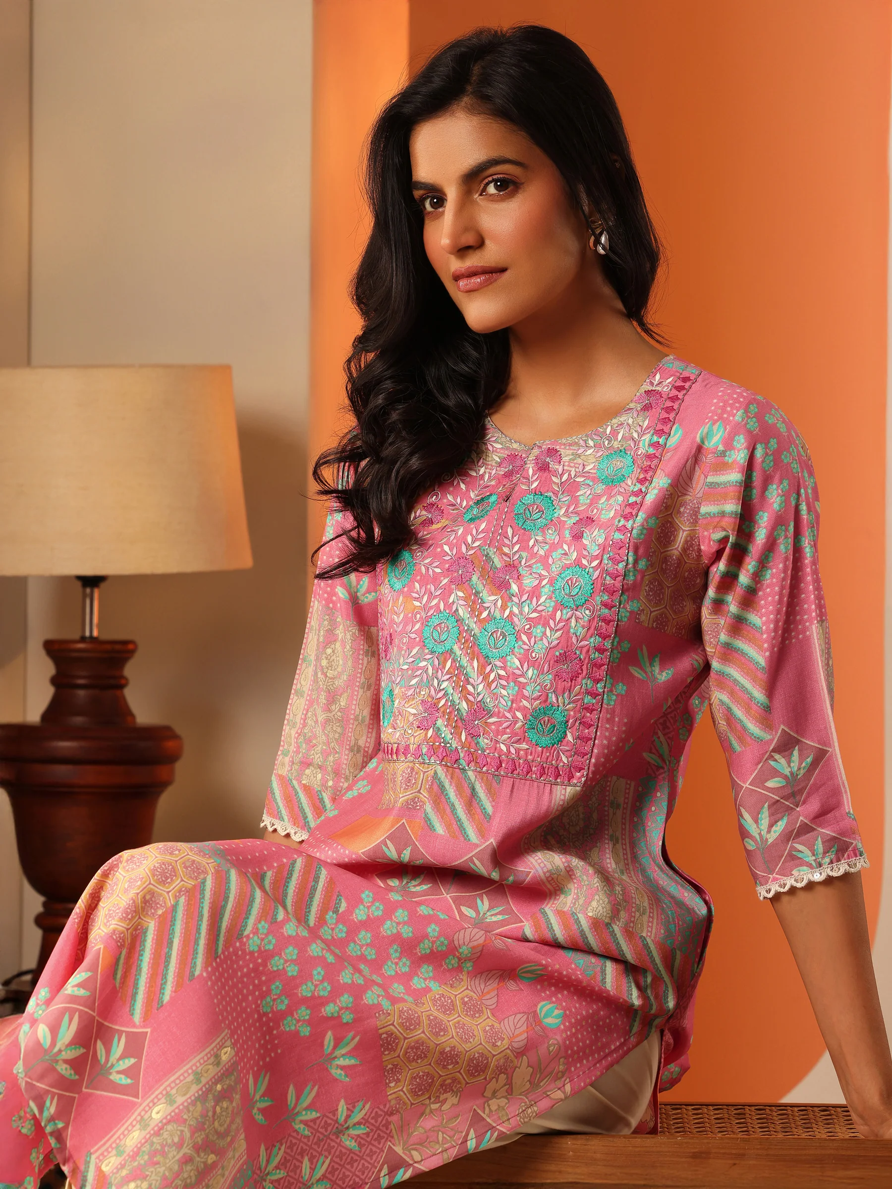 • Sleeve Length: Three-quarter sleeves