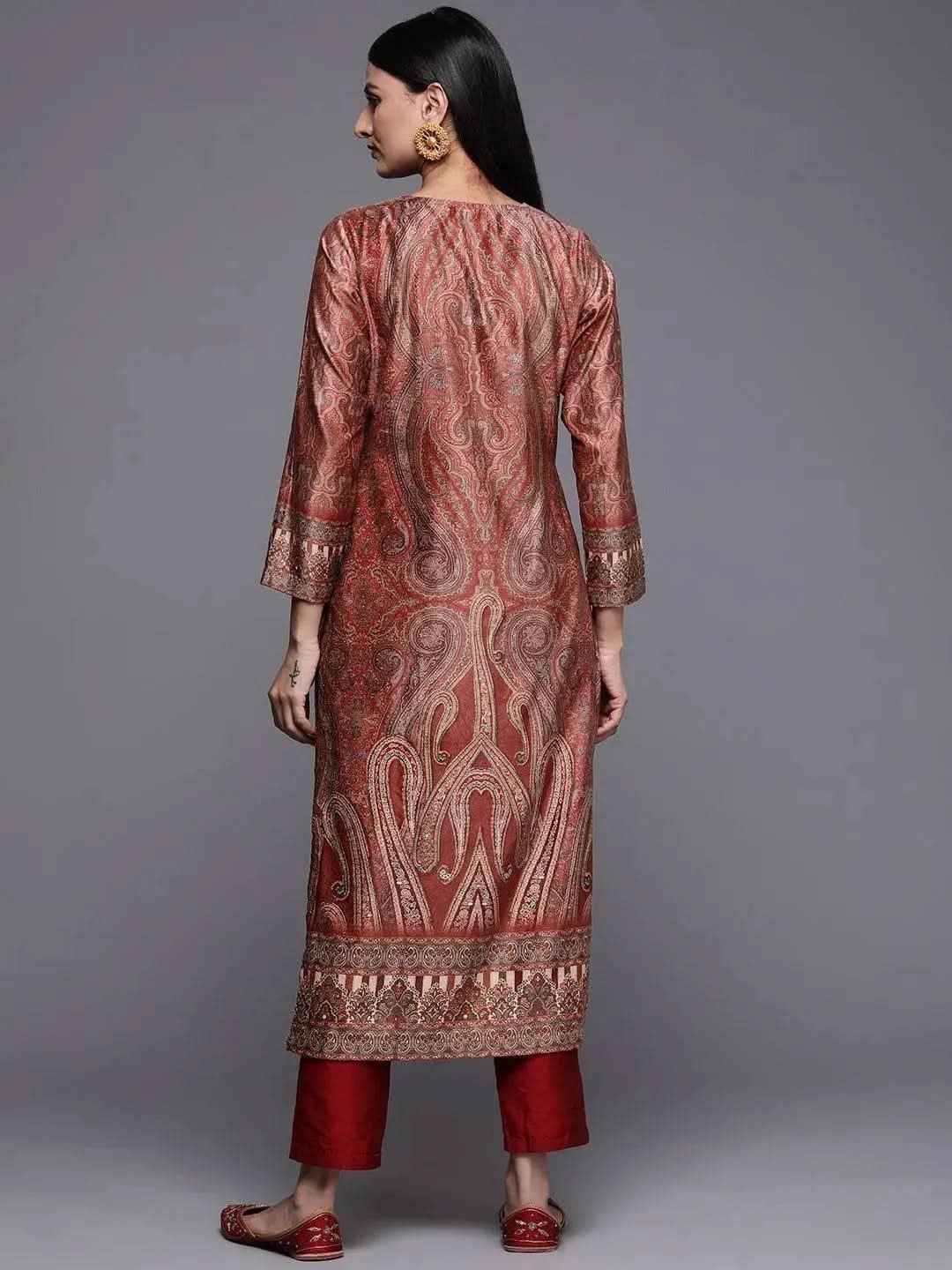 Maroon Embroidered Silk Straight Kurta